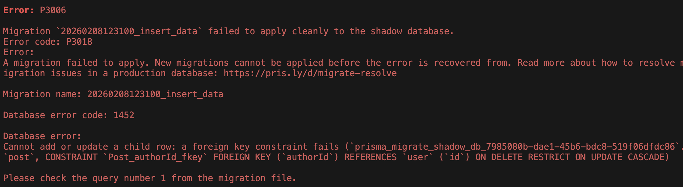 쉐도우 데이터베이스에 기존 마이그레이션 파일을 실행하는 도중 발생한다.