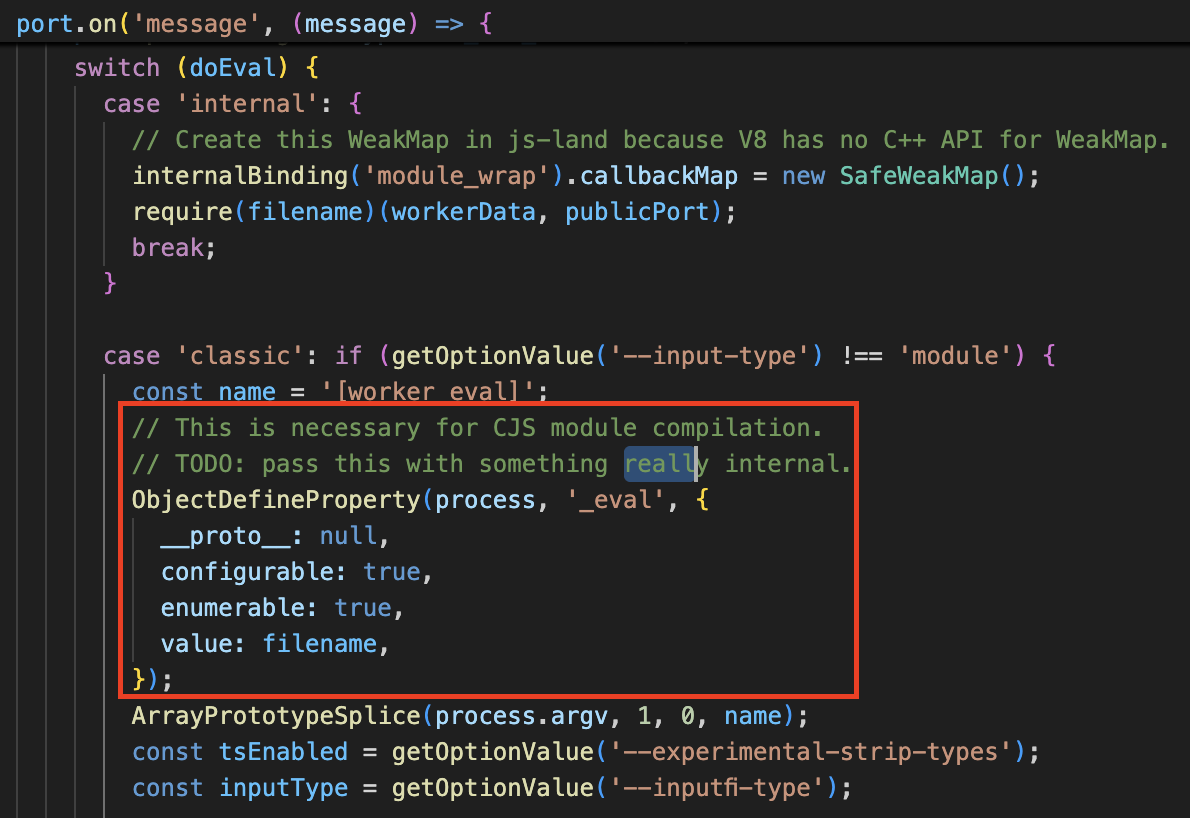 worker_threads.js. process._eval을 덮어쓴다면..?