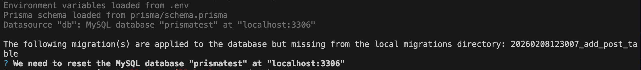 참고로, db push 에 --force-reset 옵션을 활성화하면 _prisma_migrations 테이블의 모든 로우가 삭제되므로 적절하지 않다.