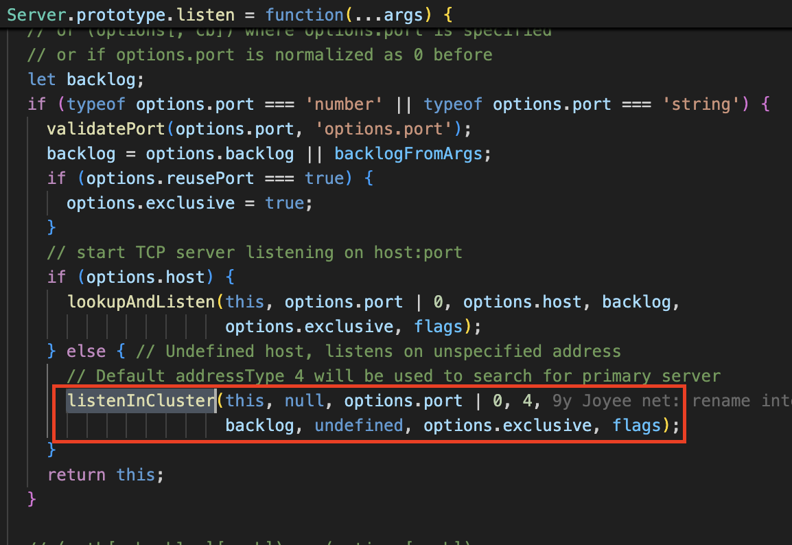 server.listen(...)이 실행되면 net.js의 해당 부분을 통해